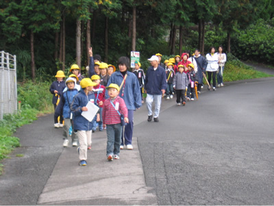 | 地域の人々とのふれあいやオリエンテーリングを通して、郷土の歴史や文化、特産品について理解を深め、郷土を愛する心を育てるため、関川小学校では校区ふるさとめぐりを毎年実施しています。 全校児童を異学年の男女混合班に分け、保護者、教職員、教育会OBも加わり12班を編制しました。地図に記された史跡のポイントを決められたコースに従って回り、地域の方からお話を聞いたりクイズに答えたりします。 くもり空で少し寒い日でしたが、子どもたちと交流したり地域の方から詳しい説明も聞けたりして、有意義な一日でした。 | |