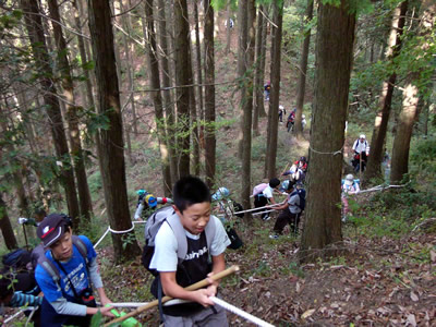 三島小児童34人・PTA12人・教職員4人 一般登山者15人・戸祇山へ登ろう会スタッフ12人