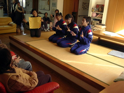 本校中学部生徒、ホームの老人の方、施設の幼児児童 (約 40名) |